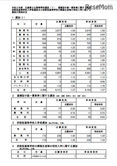広島県公立高校入試 2020 倍率 - 髿 ¡åé¨"2020 åºå³¶çå